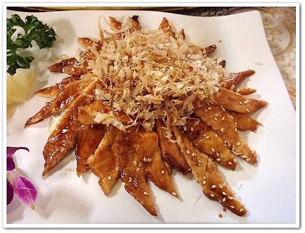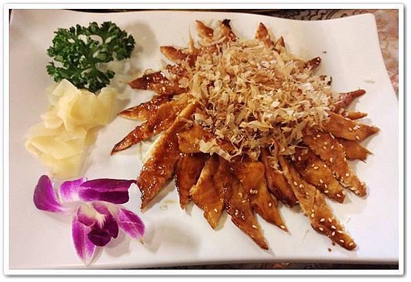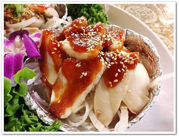 這道菜是菜單上改過滴,叫蒲燒啥魚的樣子...