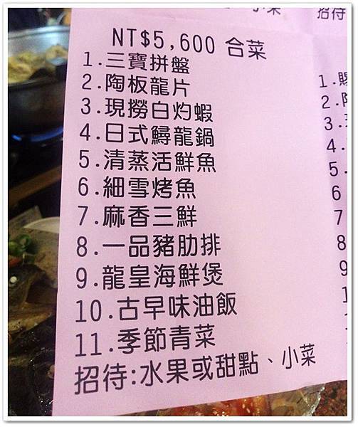 因為是過年期間,所以店家都是用統一的合菜菜單