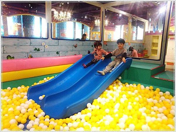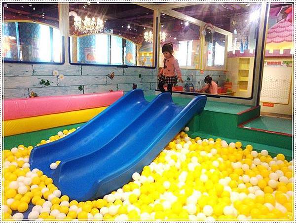 另一邊也有一個球池,是比較小型的,連溜滑梯都是迷妳款,應該是給小小孩玩滴