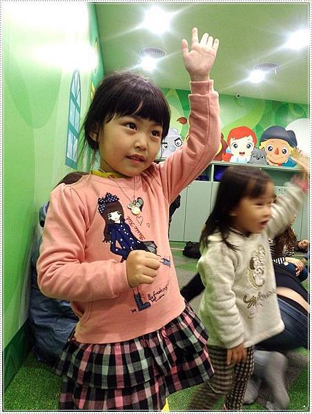 這時,剛好有整點的上課時間,是玩些小體操的遊戲,所以就帶她們進去玩看看( ̄ˇ ̄)