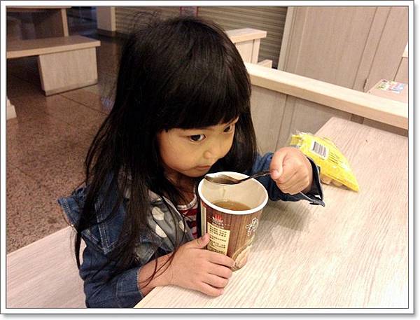 愛喝豆漿的妞妞,配著肉包吃,不知不覺自己就喀掉了半顆肉包內 b( ̄▽ ̄)d