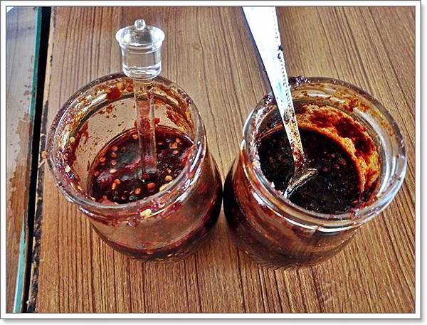 小菜先端上,下面那盤是我們覺得好吃又加點的豬肉