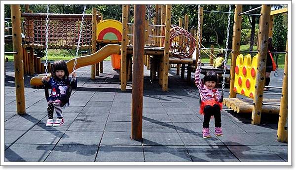 既然是森林公園,裡面就一定會有盪鞦韆溜滑梯,且還不小心被她們姐妹倆發現
