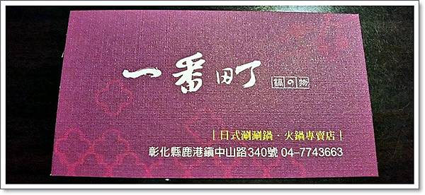 且今晚紜紜妞妞的爺爺奶奶竟然會決定吃鹿港老街附近的這家火鍋店-一番町鍋の物