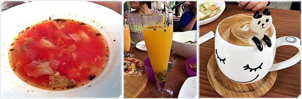 首先是單點滴主廚湯品,百香果柳橙汁及熱拿鐵◑ω◐
