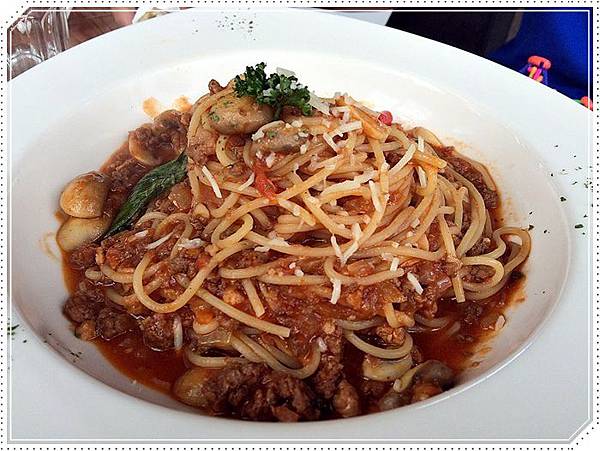 它義大利麵裡面的麵條份量算多的,我們家紜姐姐一個人吃不太完呢( ̄﹏ ̄)