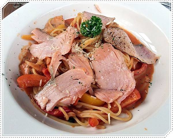 我那天不知是怎樣鬼打牆竟然會點這粉紅醬煙燻鮭魚義大利麵