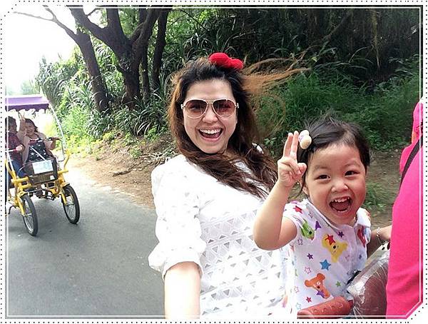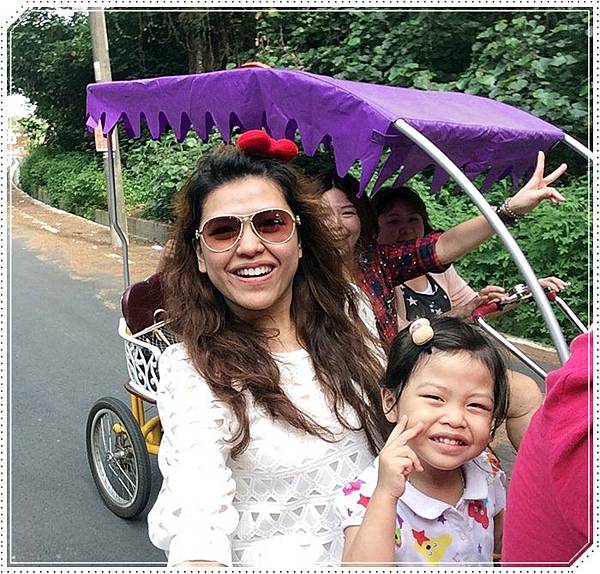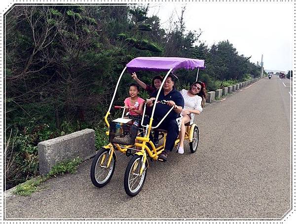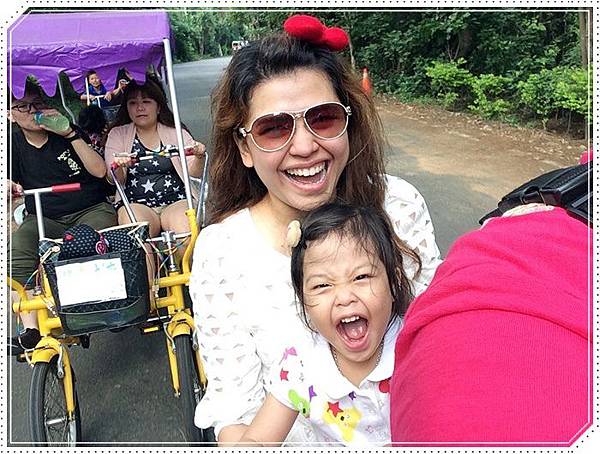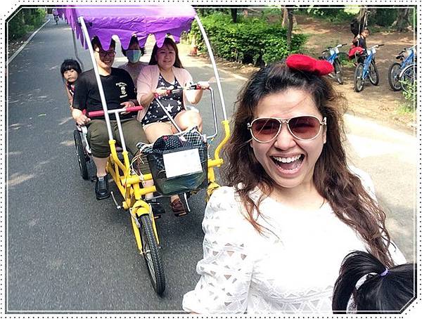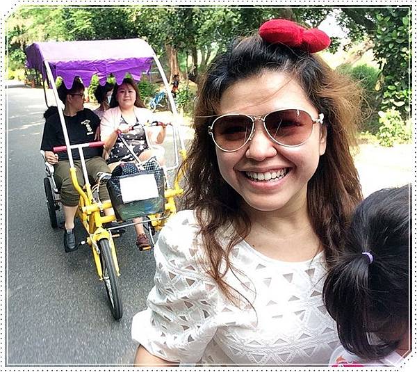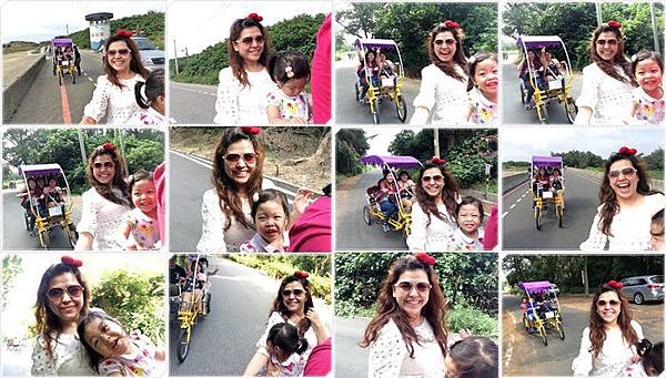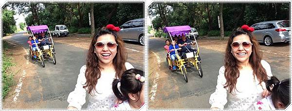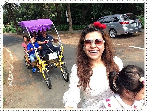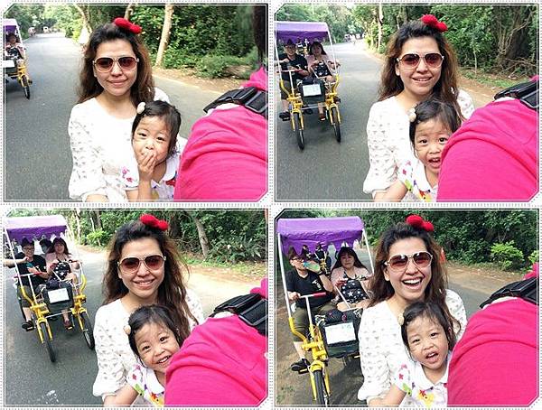 我們特別捨棄四人座的篷車改騎這種可以載小孩的協力車