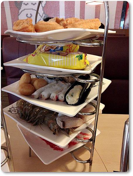 而店家送餐的方式也挺妙,是用這像放甜點的層架送上我們點的餐點滴(^(00)^)