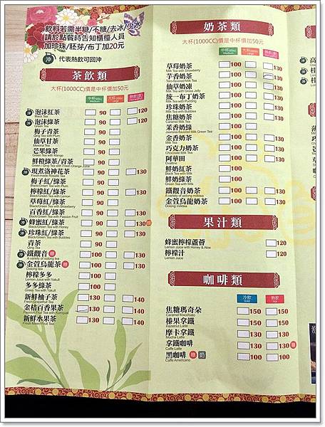 這是店家的菜單