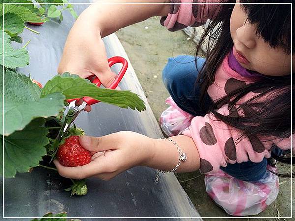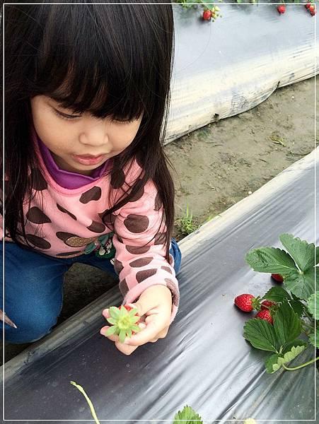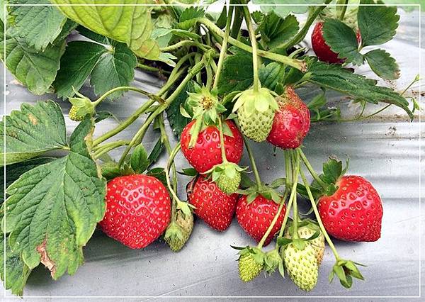 因為它有種在棚子上的草莓,不用彎腰蹲下去採...