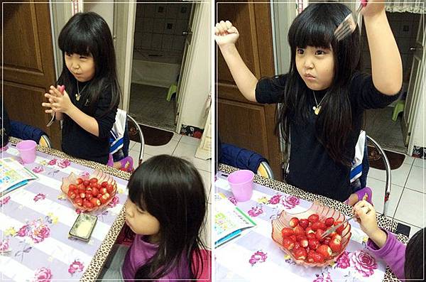 沾煉乳,兩位小朋友吃的超開心的啦![]()