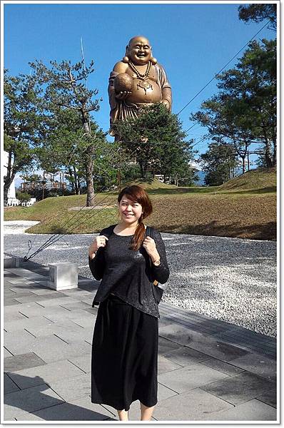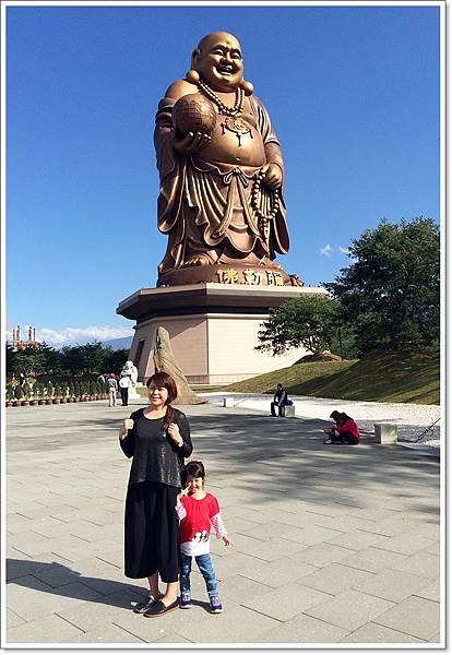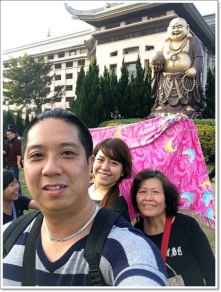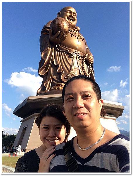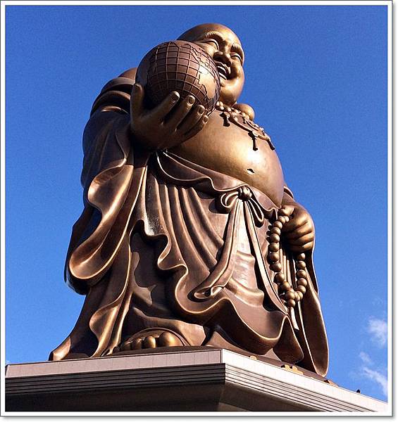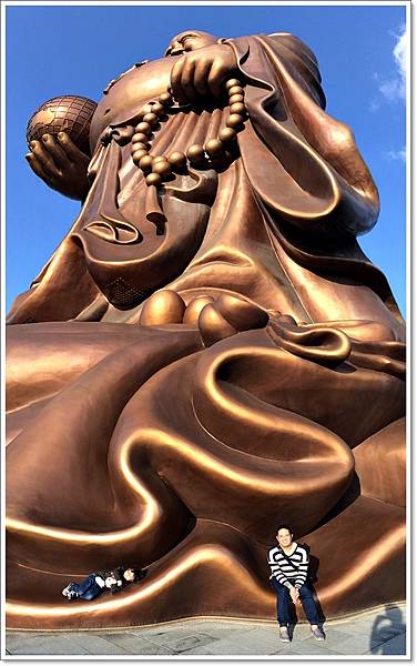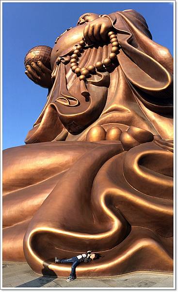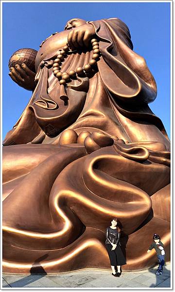 而我們也跟這尊非常非常巨大的彌勒佛神像合個影![]()