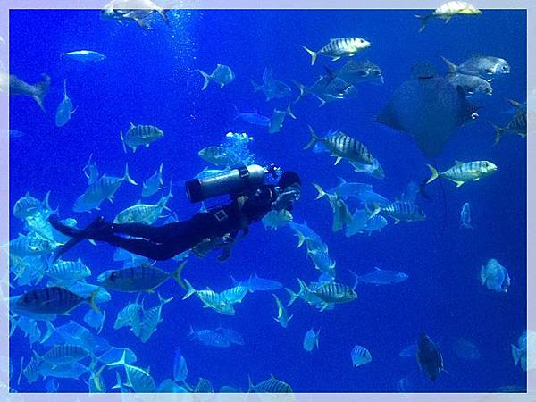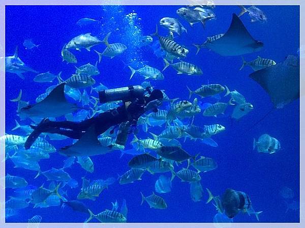 舉頭往上看,確實有著許多魚兒在我們頭上游著