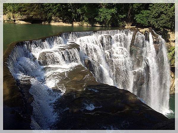 景觀特色: 因落差、寬度大,且外層岩頃向和水流方向相反,屬逆斜層瀑布,與尼加拉瀑布相同,故有台灣尼加拉瀑布之美譽