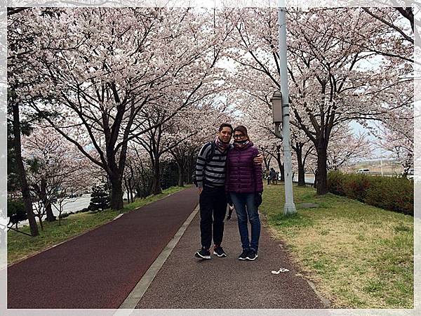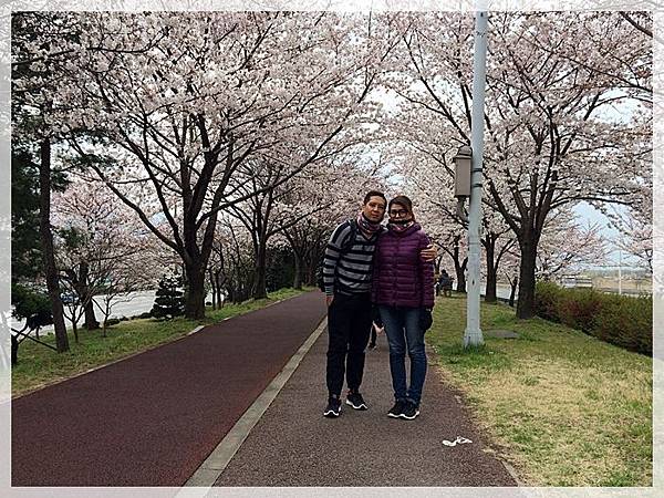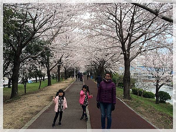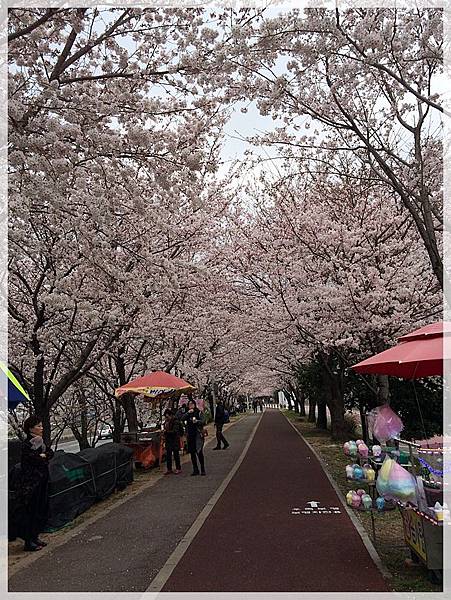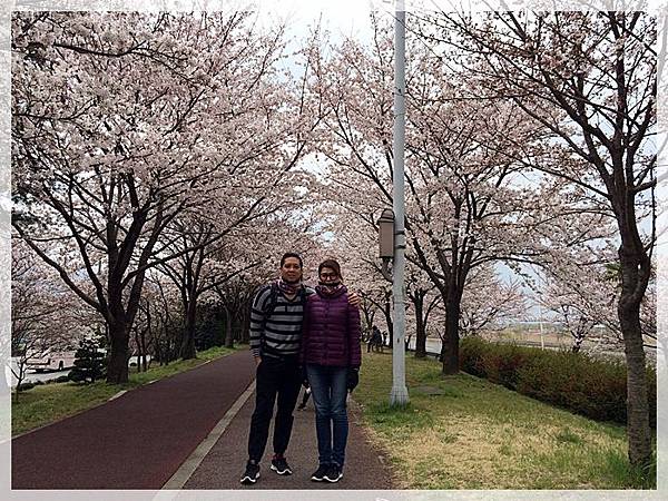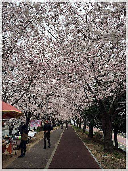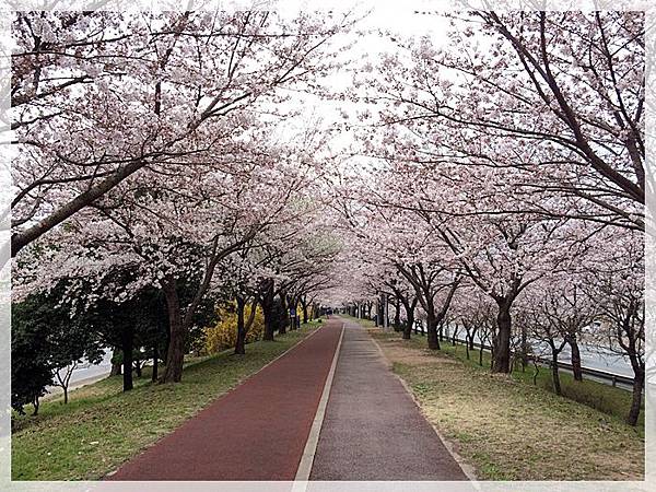 是去釜山地鐵沙上站出口直行約10分鐘路程左右的三樂江公園看櫻花![]()
