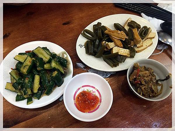 小菜還不錯吃,尤其是贈送的小黃瓜很脆很爽口![]()