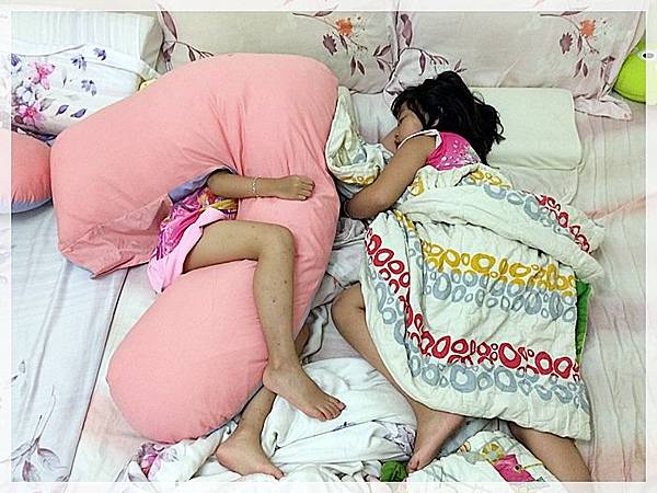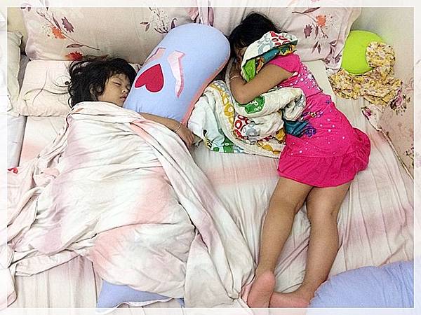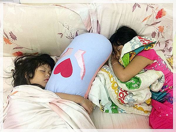 現在她們兩姊妹都很愛麻咪的抱枕