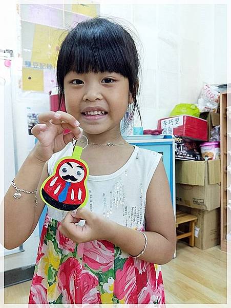 今天妞妞學校做這個父親節鑰匙圈