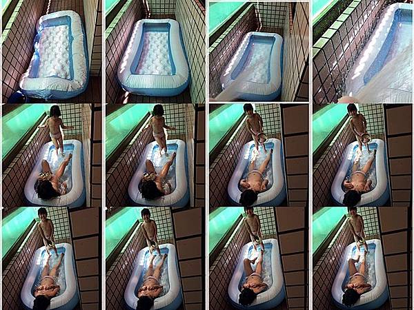 然後擺上我新買的泳池,有特別量好尺寸的...