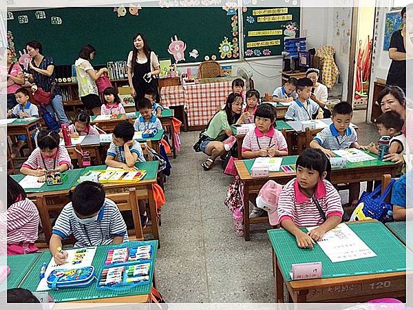 很多家長都來關心小朋友的第一天開學...