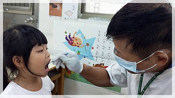 今天妞妞學校有牙醫來檢查牙齒順便塗氟