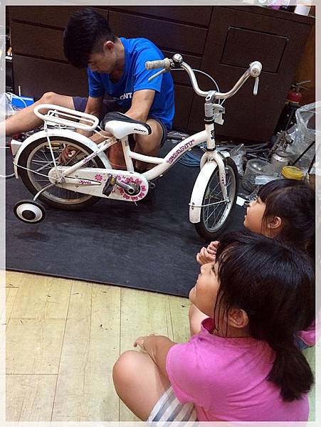 晚上回外婆家像子練習騎沒輔助輪的腳踏車
