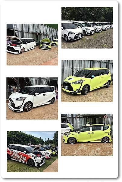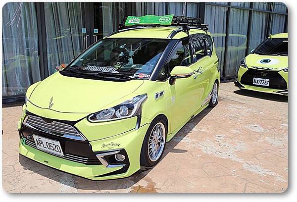 一進會場就可以看到很多台改的很美的SIENTA展示在會場中間囉