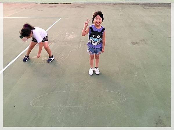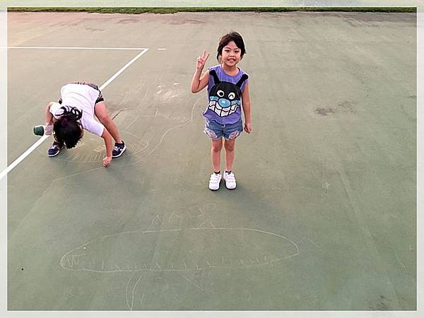 我去打籃球,兩姊妹則在一旁自行玩耍