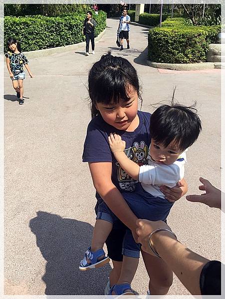 不受控的弟弟還自己爬出嬰兒車![]()