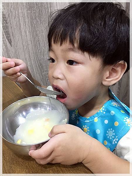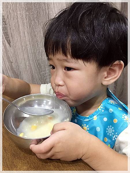 2019.10.07 弟弟練習喝玉米濃湯