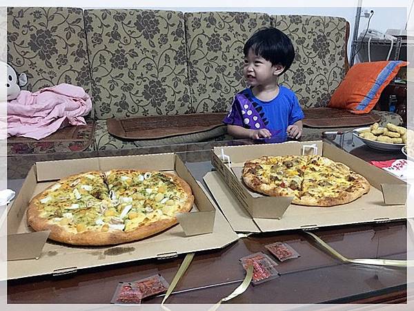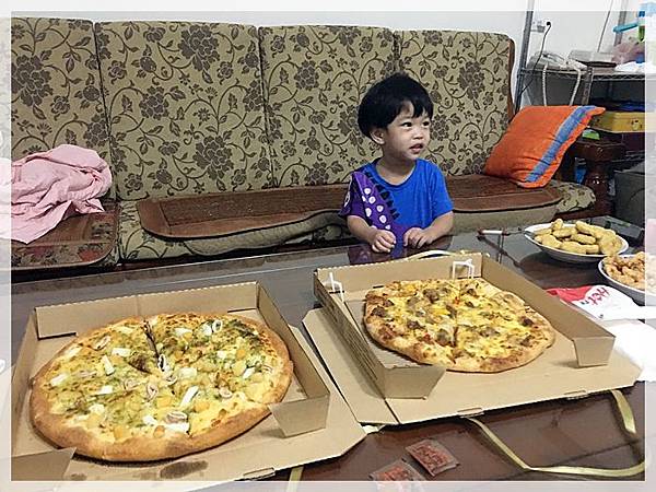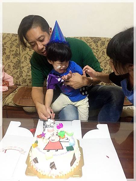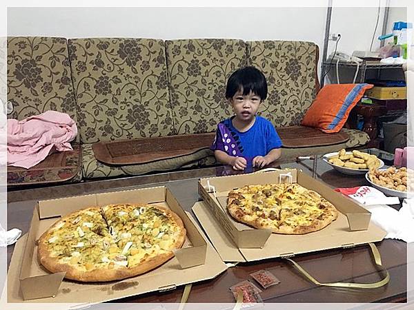 我們買了PIZZA還有小蛋糕去外婆家幫他慶生