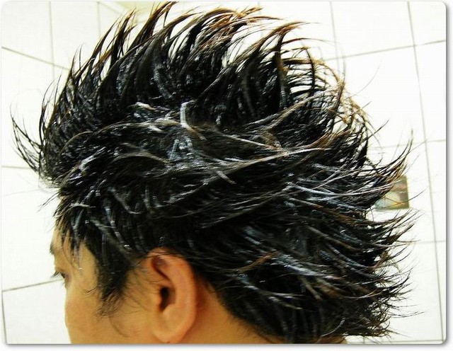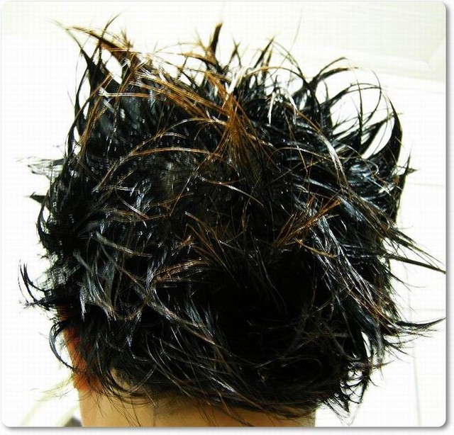 然後就像洗頭般的簡單把泡泡染髮劑灑在頭毛上就對了